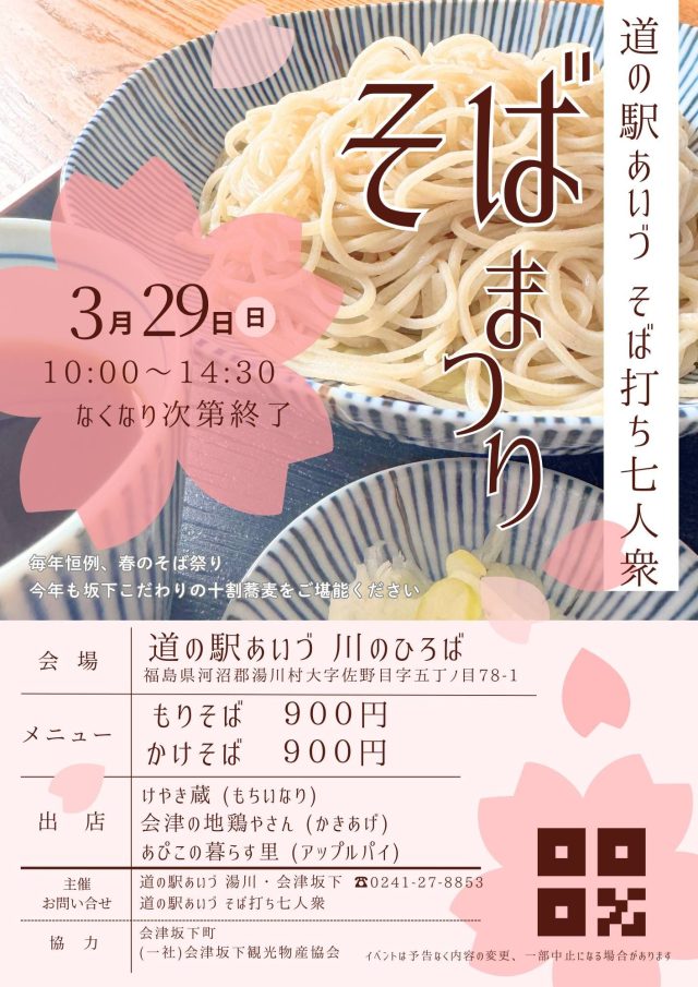 3/29は道の駅あいづにてそば祭り開催いたします